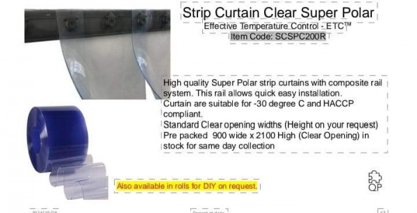 High quality Super Polar strip curtains with composite rail system. This rail allows quik easy installation.